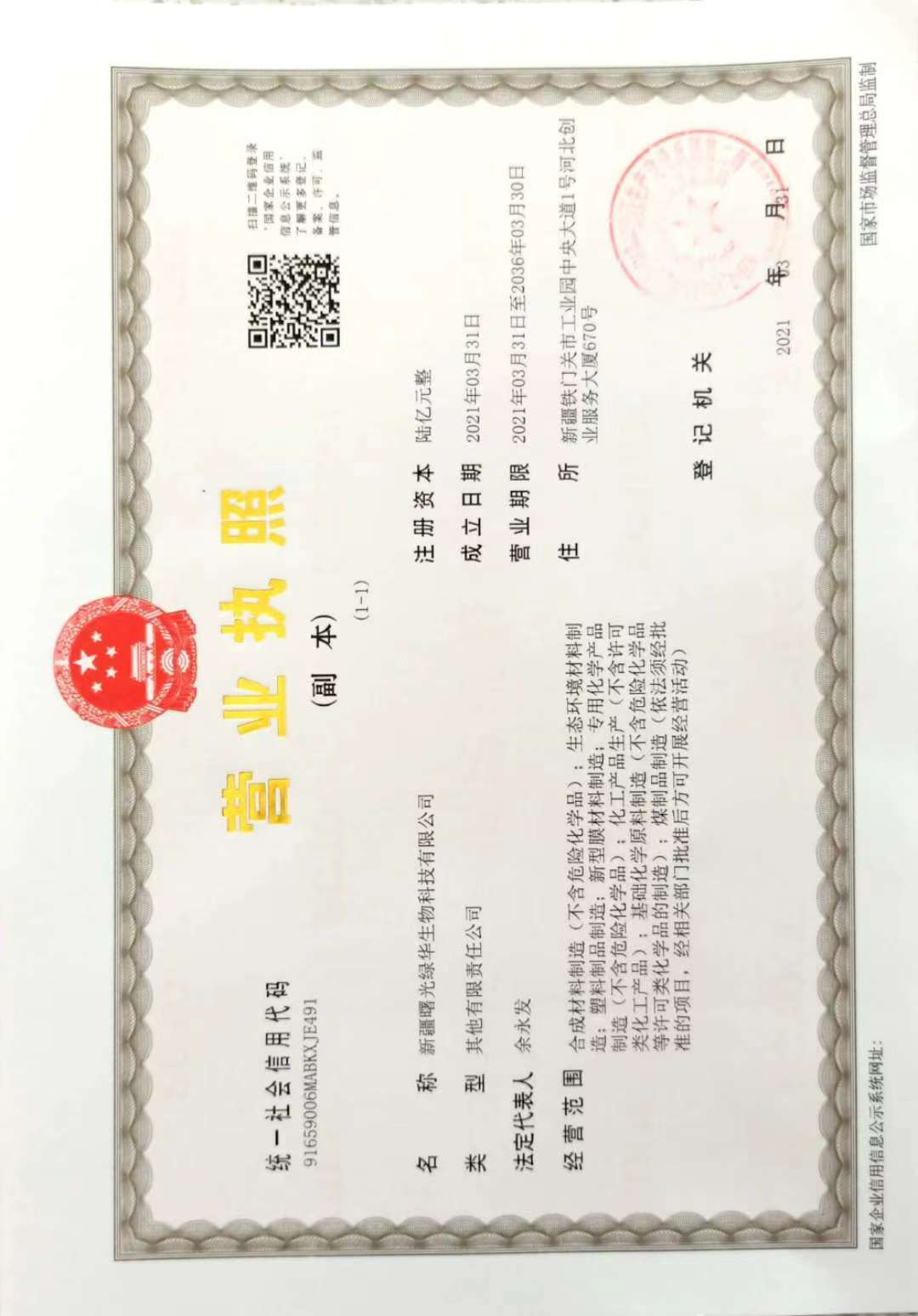 新疆曙光綠華生物科技有限公司由東華科技與安徽曙光化工集團股份有限公司、新疆綠原國有資本投資運營有限公司共同設(shè)立,注冊資本金15億元,其中東華科技持股5%。經(jīng)營范圍包括合成材料制造(不含危險化學品)、生態(tài)環(huán)境材料制造、塑料制品制造、新型膜材料制造、專用化學產(chǎn)品制造(不含危險化學品)、化工產(chǎn)品生產(chǎn)(不含許可類化工產(chǎn)品)、基礎(chǔ)化學原料制造(不含危險化學品等許可類化學品的制造)、煤制品制造等業(yè)務(wù)。