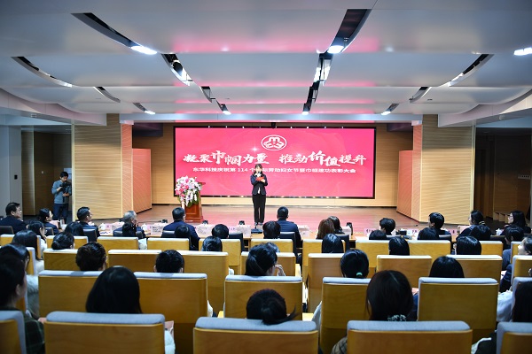 颯颯東風(fēng)唱祝歌,春光瀲滟贊巾幗。在播放了先進集體和先進個人自創(chuàng)的短視頻后,獲獎代表們依次登臺接受表彰。“巾幗建功大講堂”環(huán)節(jié),4名“巾幗建功標(biāo)兵”代表,同在場人員分享了她們的先進事跡。這幾位優(yōu)秀女性代表的故事,激勵著每一位女性同胞,展示了勇于擔(dān)當(dāng)、昂揚向上的巾幗力量。此外,東華職工精心編排的歌舞曲藝等節(jié)目盛妝上演,共同慶祝節(jié)日,為大會增添了一抹靚麗的色彩。