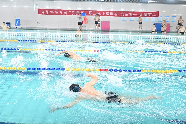 為進(jìn)一步豐富職工文化生活,為濃濃夏日帶來絲絲清涼,8月5日,東華科技“安康杯”職工水上運(yùn)動(dòng)會在合肥高新創(chuàng)新實(shí)驗(yàn)中學(xué)游泳館舉行。來自各部門的10支隊(duì)伍,共70余名職工參加比賽。